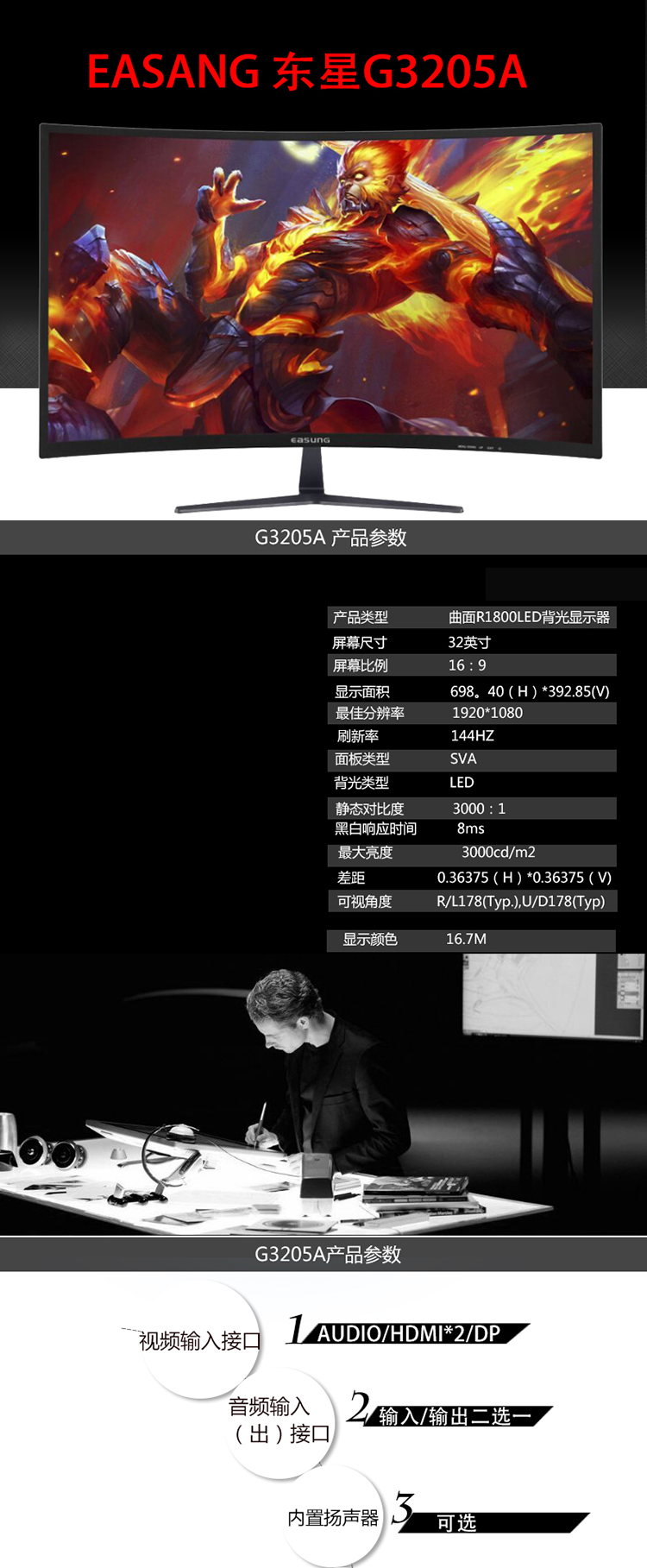 今日推荐 东星G3205A 32寸曲面屏 144Hz游戏电竞无边框超薄液晶显示器 昆明卓兴电脑批发 云南显示器批 发布日期:2019-04-17