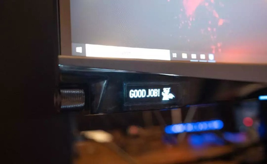 面板方面为人见人爱的IPS屏,画面素质自然不用担心,而且其属于微星游戏旗舰的MEG系列,在规格上令人放心,显示器底部还带了个显示屏,可以显示一些参数和状态,和MEG Z390 GODLIKE/MEG X570 GODLIKE主板上的龙魂动态面板很相似。