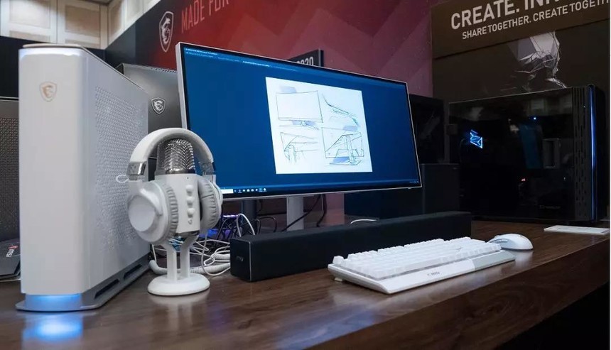 除了宙斯盾Ti 5外,本次CES我们还展出了旗下的设计师系列产品,比如P100主机。这款产品于10月在国内开卖,其配置为I9 9900KF、64G DDR4内存、RTX 2080Ti显卡和高达2TB NVME硬盘,可以说各方面性能都很强大,且外观设计精美小巧,放在桌面上也不会很占地方。搭配专用软件可实现加速专业生产力软件的工作效率。