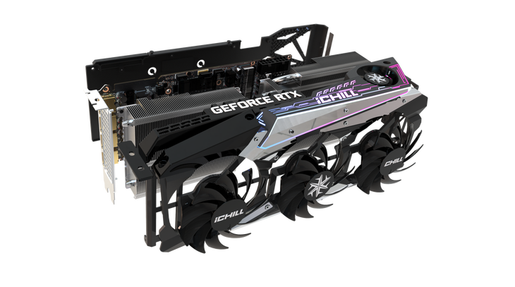 散热一直是冰龙的传统特色,这款ICHILL X4散热器在主散热模块使用的是7热管密挤直触工艺,7根热管与GPU核心完全贴合,可以快速带走热量;而为了给显存及供电模块散热,散热器还加装了一根热管,用于连接显存/供电的散热模块与鳍片,同时通过侧边小风扇可以快速排出,为显卡起到立体散热的效果。而为了防止显卡变形,显卡还带有金属臂设计 ,考虑到早前赠送的金刚臂有部分玩家在安装时会有困难 ,因此映众INNO3D在后续的出货中均已默认将金刚臂安装好再出货。