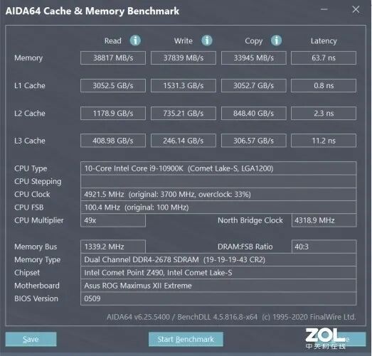 由于现阶段的主流主板为B360/B365系列,这类主板支持的内存频率上限为2666MHz,测试考虑到这类用户,所以先进行2666MHz测试,时序为19-19-19-43。