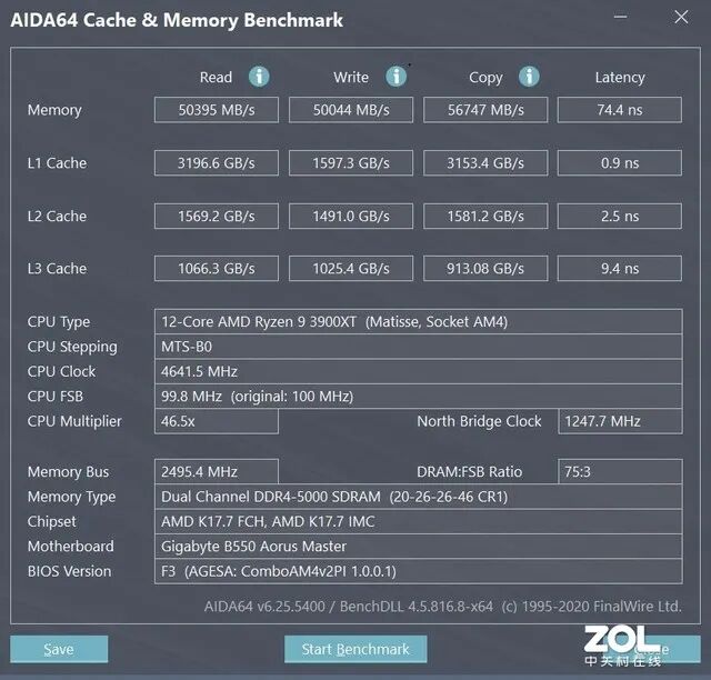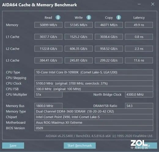 从测试的结果来看的,内存频率的提升,对于性能的影响还是非常大,通过XMP将频率自动同步至3600MHz之后,XPG 龙耀 D50 3600内存的读取速度为50899MB/s,写入速度为51345MB/s,复制速度46071MB/s,延迟为49.9ns,同比2666MHz在性能上得到了大幅度的提升。
