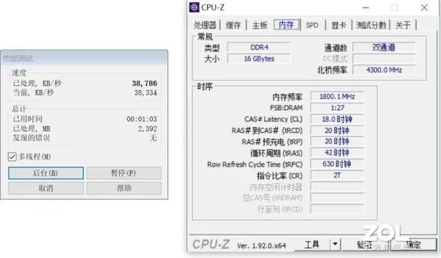 通过测试成绩我们可以看到,内存频率的高低对解压缩的成绩影响也十分明显。如上图,在3600MHz测试中,最终解压缩成绩为38786,同比2666MHz有明显提升,提升12.7%。