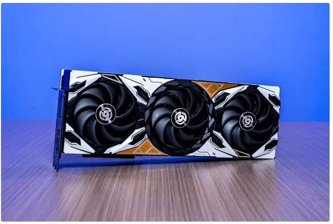 除此之外,显卡的散热功能还搭载冰芯 2.0 散热系统,配备三枚高效环刃风扇,搭配大面积冰镜铜底导热模组,可快速传导热量,严格控制负载温度。