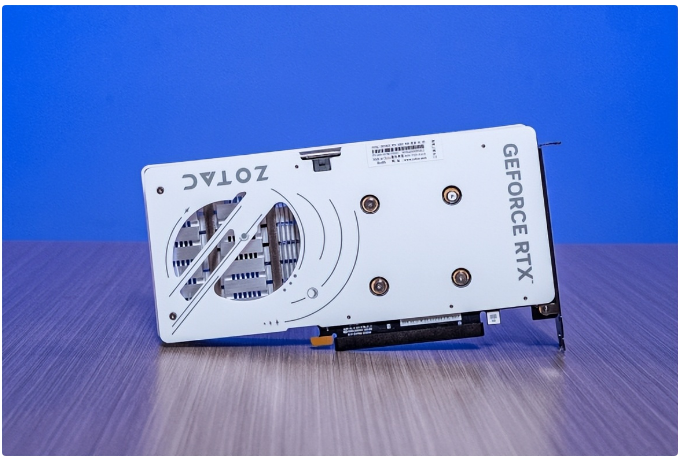 索泰 GEFORCE RTX 5050 8GB 月白 OC机身以简约为核心,风扇特意采用两大一小、两正一反的布局,通过优化空气流通路径提升散热表现。背板选用金属材质,搭配镂空雕花工艺,银色的 GEFORCE RTX 与 ZOTAC logo 醒目亮眼,既丰富了视觉层次、增添活泼感,又能辅助散热。纯白机身还具备极强的装机适配性,尤其契合白色海景房机箱,实测装机呈现出的高颜值效果,能充分满足颜值党玩家的需求。