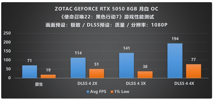 总的来说,索泰 GEFORCE RTX 5050 8GB 月白 OC是一款入门级定位的高性价比产品,能够流畅游玩1080P画质的《使命召唤 22:黑色行动 7》,推荐预算不够的小伙伴考虑购入。