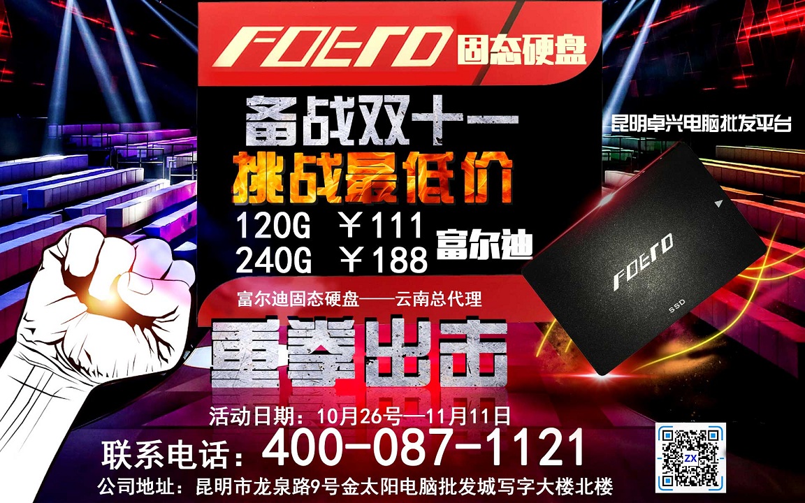 昆明卓兴电脑批发平台 迎双十一固态硬盘再次重拳出击 挑战底价台湾富尔迪120G 111元;240G 188元!云南电脑批发平台 昆明卓兴电脑商城
