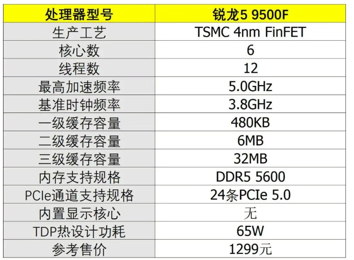 无集显、性价比更高的游戏处理器 锐龙5 9500F