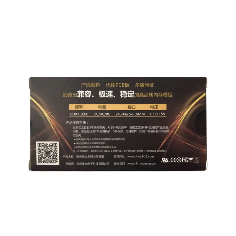 麦光黑金MG 8G-DDR3 1600 笔记本 内存条 单条