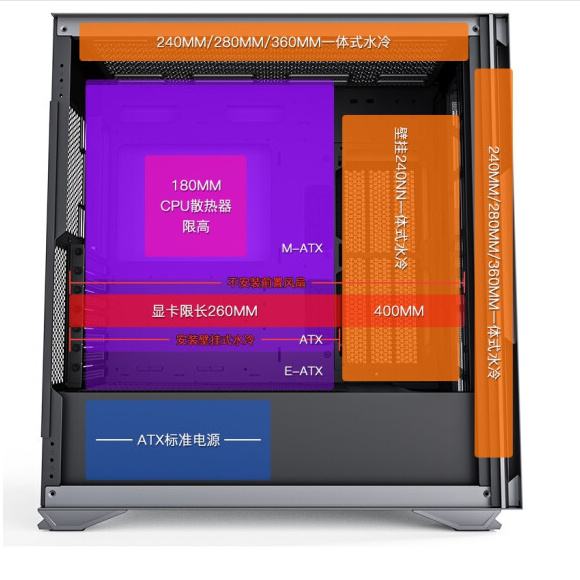 • 支持主板:E-ATX(加大型),ATX(标准型),M-ATX(紧凑型),MINI-ITX(迷你型)