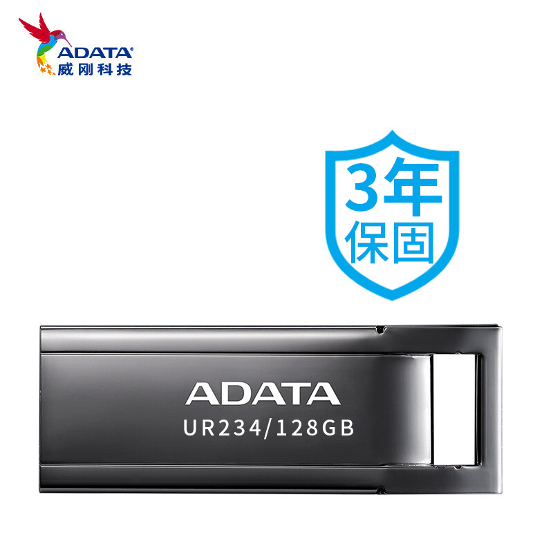 威刚(ADATA) UR340 金属 黑色 128GB高速传输U盘USB3.2接口 招标投标电脑办公车载音箱存储商务优盘