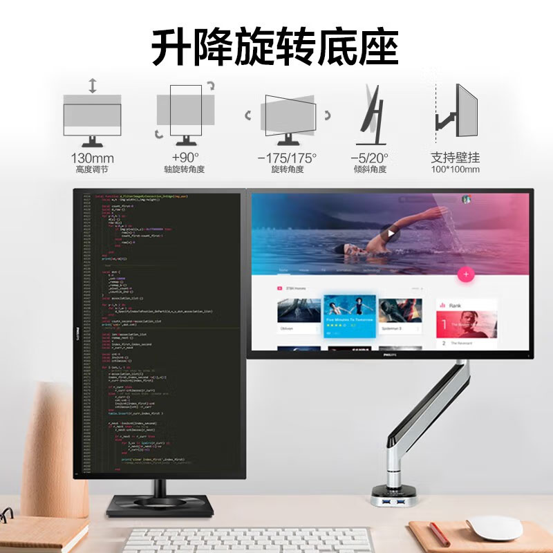 飞利浦(PHILIPS)27E1N8900 27吋OLED 4K HDR400 0.1ms Type-C专业高端设计显示器