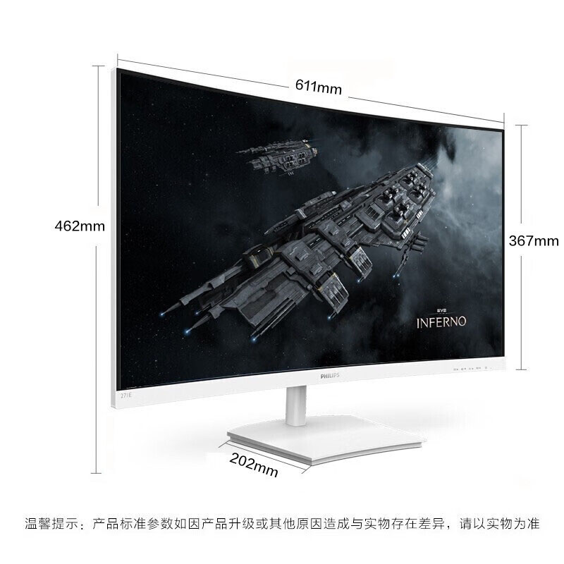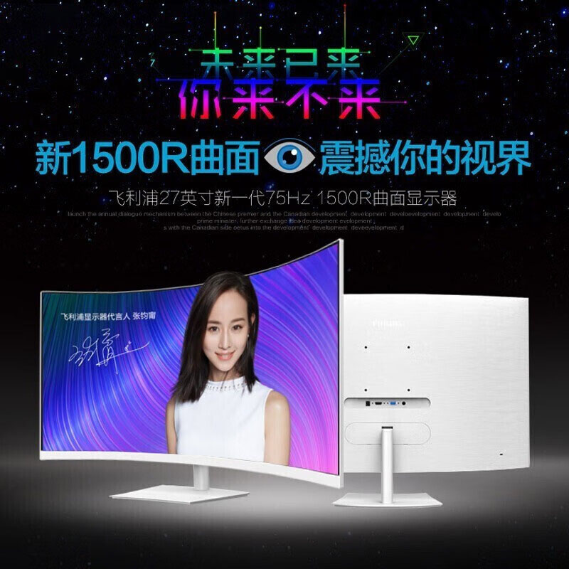 飞利浦(PHILIPS)271E1SCW 27英寸 1500R曲面显示器 FHD 75Hz FreeSync技术 全高清办公显示屏