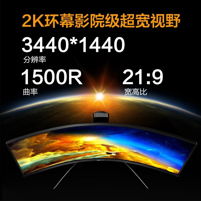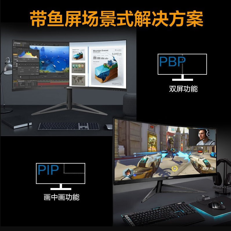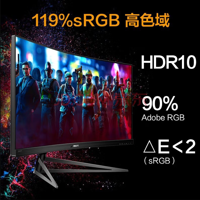 飞利浦 猛腾345M1CR 34英寸 2K曲面带鱼屏219 144Hz 1ms 1500R HDR 可升降 电竞显示器