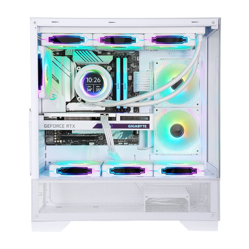 游戏风暴 星空PRO 白 ATX海景房机箱台式机 双面玻璃/无立柱/360水冷位/底部270°网孔散热