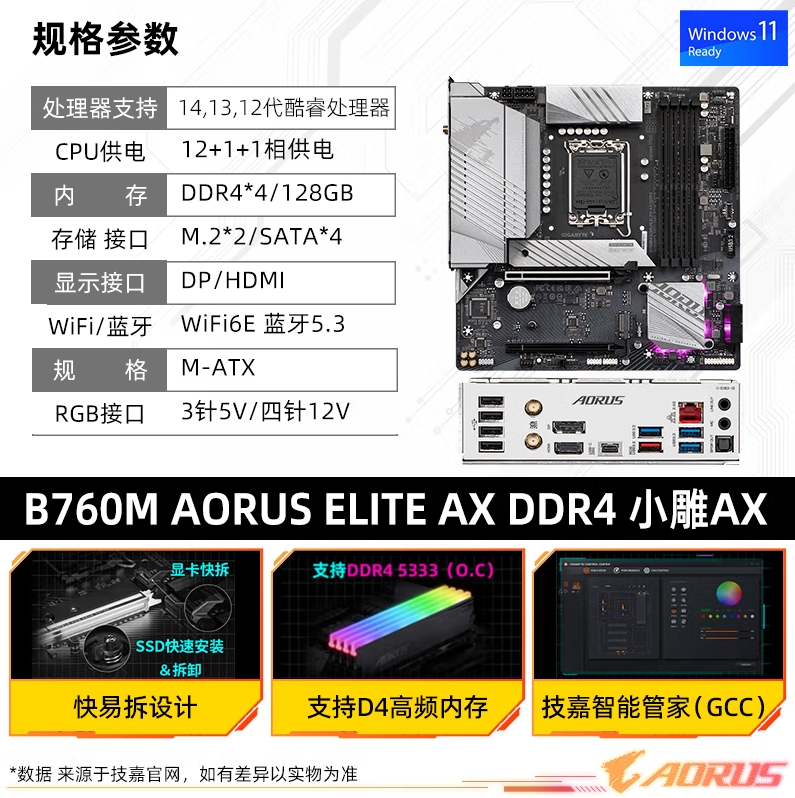 技嘉(GIGABYTE)小雕WIFI X670 AORUS ELITE AX W...