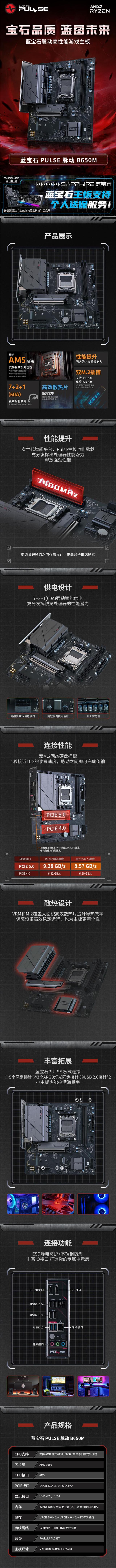蓝宝石PULSE脉动 B650M 主板 支持AMD 锐龙9000/8000/7000系列处理器