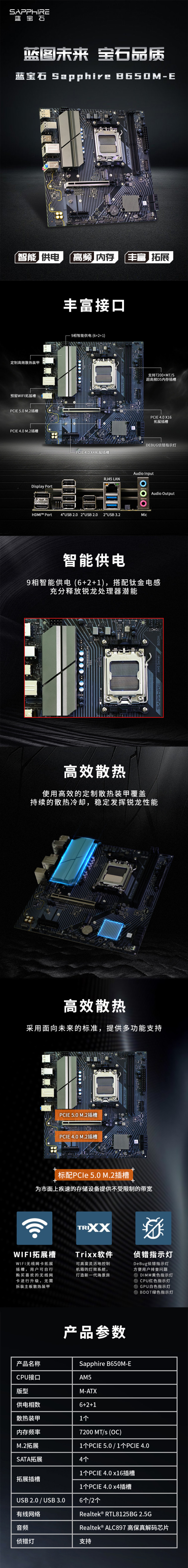 蓝宝石SAPPHIRE B650M-E主板 支持AMD 锐龙9000/8000/7000系列处理器