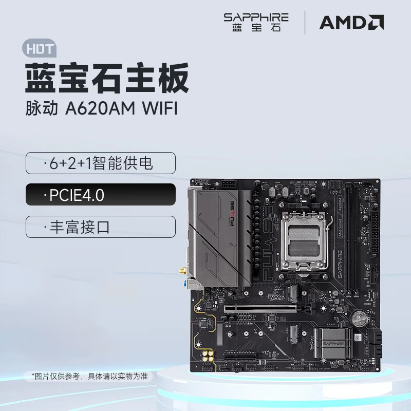 蓝宝石PULSE脉动 A620AM WIFI 主板 支持AMD 锐龙9000/8000/7000系列处理器